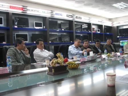 都說:貴人出門風雨多。經過一路的風風雨雨,下午3時左右,一行人到達了位于深圳市龍崗區坪山的深圳市順達數碼資訊有限公司(以下簡稱:順達數碼),得到了順達數碼董事長宋偉及其工作人員的熱情歡迎。天空一時竟晴朗了起來,似乎被熱情感染了似的。順達數碼宋總一臉笑意迎著我們進了貴賓接待室,協會領導和各企業精英齊聚一堂,就行業目前的形勢和企業面臨的現狀及問題發表了各自的看法,人人暢所欲言,討論氛圍一度高漲。隨后宋總帶著我們一路參觀了公司的辦公區,生產車間及各專業工作室,最后來到了產品展示廳。一進產品展示廳,現場每個人都眼前一亮,中間一張偌大的會議桌,周圍陳列著各種各樣不同尺寸精致美觀的液晶顯示器,播放著的高清畫面讓顯示器愈加看起來專業而美輪美奐。