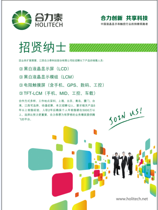 自從2004年成立以來,合力泰全體人員一直以熱忱的服務及精良的技術來幫助客戶創造更優質的產品。合力泰秉持‘以客戶為中心、以品質為生命、以創新為動力、以人才為根本’的理念,在公司規模、核心競爭力、增長速度和企業形象等方面健康快速地成長。合力泰利用短短幾年的時間實現突破性進展,一躍成為全球液晶及觸控行業的新銳。