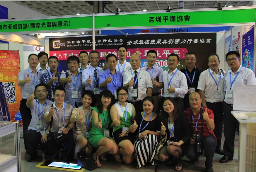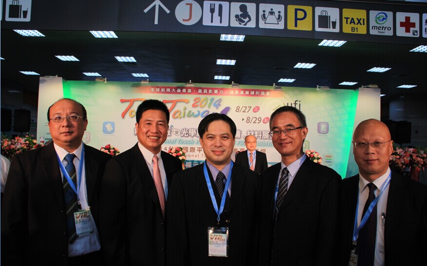 2014 Touch Taiwan于8月27日在臺北舉行。作為全球唯一通過UFI認證的觸控、面板暨光學膜產業的相關展覽會,吸引了430 家包括日本夏普、日本旭硝子、日本電氣硝子等多家國際大廠首度參展,并展出了最新的最前沿的觸控、面板的技術與產品。在此次產業盛會中,深圳市平板顯示行業協會偰正才秘書長、梁毅副秘書長、胡偉副秘書長帶領協會會員單位及企業代表赴臺組團參觀、參展與實地考察。本次考察團有來自宇龍酷派、俊達光電、東麗華、金耀玻璃、廈門豪爾、海斯迪克、金龍科技、君信達、鴻瑞祥光學、昶檀實業、康樂德實業、五株電子、春之實智能、合力泰、源興光學、同創儀器、三海光電、尤特材料、點金科技等企業共計40位企業高層參加。本次盛會上我協會也帶來CITE2015的最新籌備情況,并與臺灣多家產業協會溝通、交流,共同為兩岸平板顯示觸控產業的發展提供新的合作思路。