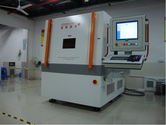 據介紹,盛雄激光皮秒激光微加工系統采用全球領先的德國140W高功率紅外和綠光雙波段輸出皮秒固體激光器,完全的實現高精度和高效率、高硬度脆性材料微細加工,能適合任何對熱敏感和高硬度易碎材料的鉆孔、切割、刻劃加工。整機的核心控制系統采用盛雄激光自主研發的“StrongSmart”多軸激光控制軟件,支持CCD視覺定位,XYZ三軸運動平臺同時聯動,同時還支持激光光學部分振鏡掃描系統的三軸加工。由于皮秒激光加工時脈寬特別窄,激光頻率特別高,超高的峰值功率,幾乎沒有熱傳導產生,所以加工對熱影響比較敏感的材料時無任何熱影響和應力產生。皮秒激光加工屬于目前激光行業最有前景的第四代精密的冷加工方式,是激光行業未來發展的趨勢,可以適用強化玻璃、超薄金屬片、陶瓷基片、藍寶石基片等所有材料的微孔鉆孔及精細切割加工。目前主流的應用有相機保護鏡頭及手機Home鍵、智能手機蓋板切割,高檔鐘表行業精密齒輪部件的切割鉆孔,半導體微電子行業電路刻劃和切割。