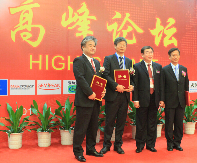 今年是深圳平板顯示行業協會成立十周年,在年初協會成立了專家委員會,目前協會已有31位國內行業專家。在此次大會上,協會又聘請韓國慶熙大學張震教授、臺灣明新科技大學教授顧鴻壽和日經BP社林哲史為協會的國際專家委員,深圳市平板顯示行業協會首席顧問、專家委員會主任孫政民現場頒發聘書。