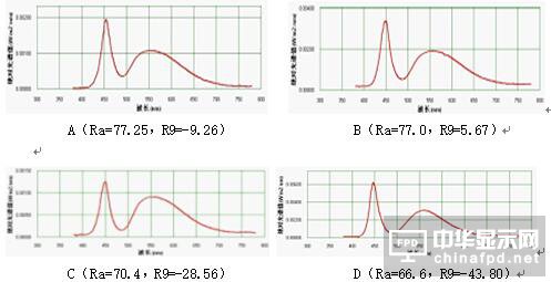 為了更加直觀準確地比(bi)較(jiao)不同手(shou)機閃(shan)光燈(deng)的(de)拍照(zhao)效(xiao)果,本文(wen)中對多款手(shou)機閃(shan)光燈(deng)的(de)光譜進(jin)行了測試和(he)比(bi)較(jiao),見圖8,由測試結果不難看出,型(xing)(xing)號(hao)A閃(shan)光燈(deng)的(de)Ra數值最高(gao),型(xing)(xing)號(hao)B緊跟其后,但要指出的(de)是型(xing)(xing)號(hao)B閃(shan)光燈(deng)的(de)R9是正值,意味著(zhu)對紅色(se)顯示較(jiao)好,綜合表(biao)現型(xing)(xing)號(hao)B的(de)色(se)彩表(biao)現會更好。