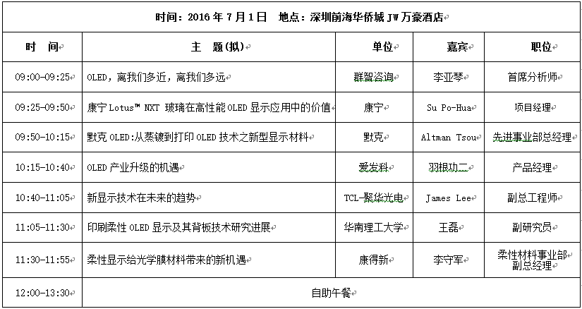 大(da)(da)會(hui)將有(you)(you)OLED發(fa)明人(ren)鄧青云先生到會(hui)做主(zhu)旨(zhi)演講,另外還有(you)(you)LG Display、京東方、華(hua)星光(guang)電(dian)(dian)、天馬(ma)、維(wei)信諾等(deng)面板廠商(shang)(shang),康(kang)寧、默克、愛發(fa)科(ke)、AP SYSTEMS等(deng)材料(liao)和(he)裝備廠商(shang)(shang),清華(hua)大(da)(da)學(xue)(xue)、華(hua)南理工大(da)(da)學(xue)(xue)、香港科(ke)技大(da)(da)學(xue)(xue)、上(shang)海大(da)(da)學(xue)(xue)等(deng)高等(deng)院校,TCL、創(chuang)維(wei)、酷派、基伍等(deng)電(dian)(dian)視和(he)手機廠商(shang)(shang),中(zhong)信證券、華(hua)安基金(jin)、前海開源基金(jin)、天虹基金(jin)、富國基金(jin)等(deng)金(jin)融投(tou)資商(shang)(shang),以及國際顯(xian)(xian)示(shi)(shi)學(xue)(xue)會(hui)(SID)、韓國顯(xian)(xian)示(shi)(shi)行(xing)業(ye)(ye)協會(hui)(KDIA)、日本畫質學(xue)(xue)會(hui)(ISJ)、臺(tai)灣(wan)顯(xian)(xian)示(shi)(shi)器聯合總會(hui)(TDUA)、中(zhong)國光(guang)學(xue)(xue)光(guang)電(dian)(dian)子行(xing)業(ye)(ye)協會(hui)液晶分會(hui)(CODA)、廣東省半導(dao)體行(xing)業(ye)(ye)協會(hui)(GDSIA)、四川省平板顯(xian)(xian)示(shi)(shi)行(xing)業(ye)(ye)協會(hui)(FPDSC)、南京平板顯(xian)(xian)示(shi)(shi)行(xing)業(ye)(ye)協會(hui)(NDIA)等(deng)國內外行(xing)業(ye)(ye)學(xue)(xue)/協會(hui)的企(qi)業(ye)(ye)家、技術專家、學(xue)(xue)者、教(jiao)授、工程師以及金(jin)融界(jie)、投(tou)資界(jie)、新聞媒體界(jie)的精英人(ren)士(shi)共同參(can)會(hui)。