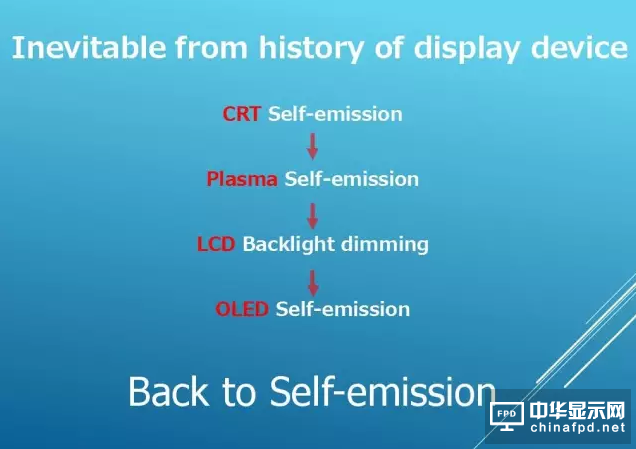 “CRT陰(yin)極射(she)線管(guan)(guan)、等離(li)子(zi)都是(shi)(shi)(shi)自(zi)(zi)發光,其(qi)中CRT陰(yin)極射(she)線管(guan)(guan)具有(you)(you)反(fan)應(ying)非(fei)(fei)(fei)常(chang)快(kuai)、沒(mei)有(you)(you)視角的(de)(de)(de)問題、黑(hei)暗對比(bi)度(du)比(bi)較高、顏(yan)色再(zai)現(xian)性(xing)比(bi)較好、脈沖響應(ying)非(fei)(fei)(fei)常(chang)靈敏等特(te)(te)點(dian)(dian)(dian),但缺(que)(que)點(dian)(dian)(dian)是(shi)(shi)(shi)只適(shi)合模擬視頻;而等離(li)子(zi)也具有(you)(you)反(fan)應(ying)速度(du)快(kuai)、沒(mei)有(you)(you)視角問題、黑(hei)暗對比(bi)度(du)高等特(te)(te)點(dian)(dian)(dian),缺(que)(que)點(dian)(dian)(dian)是(shi)(shi)(shi)會留下綠色熒光體殘影(ying),動作視頻會有(you)(you)重(zhong)影(ying),成本也是(shi)(shi)(shi)非(fei)(fei)(fei)常(chang)高,因(yin)而沒(mei)有(you)(you)得到很(hen)好的(de)(de)(de)發展。”麻(ma)倉(cang)憐(lian)士回顧顯示(shi)(shi)技術發展歷程表示(shi)(shi):“盡管(guan)(guan)LCD解決了CRT陰(yin)極射(she)線管(guan)(guan)和等離(li)子(zi)技術存在(zai)的(de)(de)(de)缺(que)(que)點(dian)(dian)(dian),但是(shi)(shi)(shi)它自(zi)(zi)身仍然(ran)存在(zai)一(yi)些無(wu)法(fa)克服的(de)(de)(de)問題。理(li)想的(de)(de)(de)顯示(shi)(shi)器是(shi)(shi)(shi)什么呢?它應(ying)該是(shi)(shi)(shi)結合了陰(yin)極射(she)線管(guan)(guan)、等離(li)子(zi)、LCD液晶所(suo)有(you)(you)的(de)(de)(de)優點(dian)(dian)(dian),但是(shi)(shi)(shi)同時又沒(mei)有(you)(you)它們的(de)(de)(de)缺(que)(que)點(dian)(dian)(dian)。這(zhe)是(shi)(shi)(shi)什么呢?這(zhe)就是(shi)(shi)(shi)OLED。”