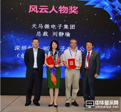 國際SID主席KIM先生、深圳市投資推廣署副署長賈長勝為天馬微電子集團總裁劉靜瑜、創維集團RGB總裁劉棠枝頒發“風云人物獎”