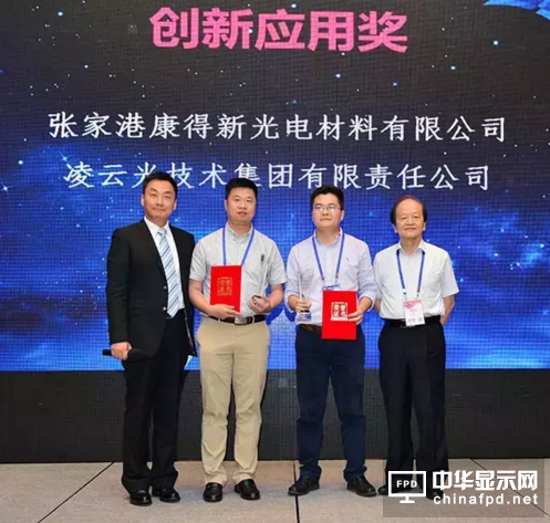 深圳市平板顯示行業協會常務副秘書長郭灝明、南京平板顯示行業協會副會長薛文進向張家港康得新光電材料有限公司、凌云光技術集團有限責任公司頒發“創新應用獎”