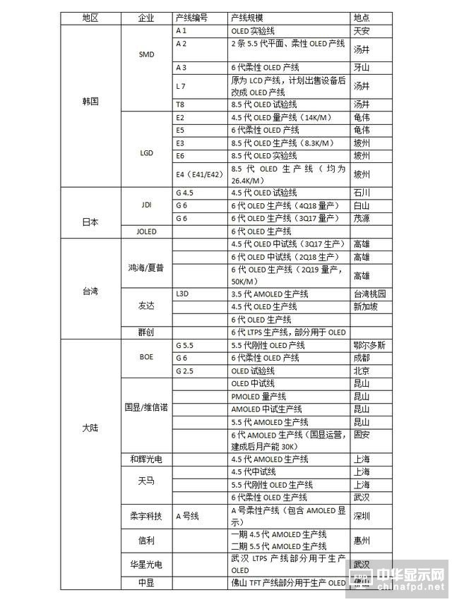 韓國方面,主要以SMD及LGD為主,前者主要推中小尺寸的OLED面板,應用于智能手機及可穿戴設備等移動終端,而LGD則主要推大尺寸的OLED面板,主要應用在智能TV上。與SMD類似,國內面板商同樣推出的都是中小尺寸的OLED面板!