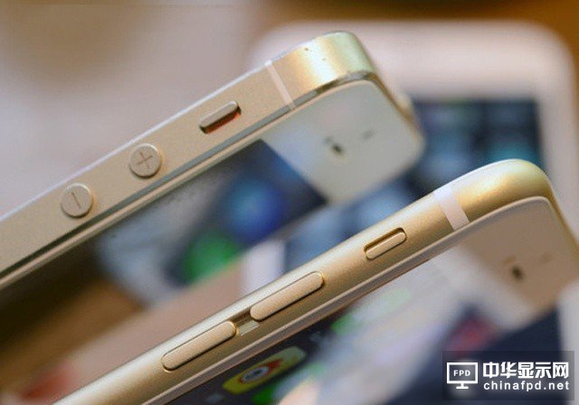 iPhone 5s(上)和iPhone 6(下)擁有不同的屏幕玻璃設計