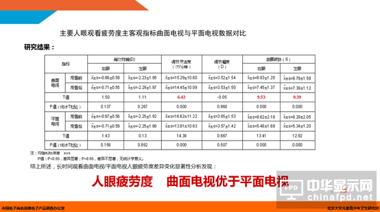 其二是人眼觀看疲勞度差異。在2016年8月中國電子商會消費電子產品調查辦公室和北京大學兒童青少年衛生研究所共同出品的《曲面/平面電視人眼觀看疲勞度差異測試》課題研究報告中發現,在長時間觀看電視后的人眼疲勞程度方面,觀看曲面電視的疲勞度要低于平面電視。