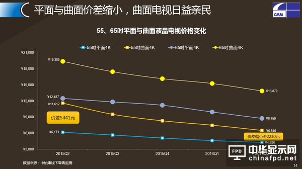曲面屏自身的優勢以及個性化和科技感十足的外觀讓平面屏僅剩下價格這最后一道防線。但隨著顯示器品牌商與制造商的跟進,曲面屏的成本慢慢降低,特別是在較小尺寸的曲面屏市場中體現尤為明顯,以三星曲面屏為例,三星C27F390F (27英寸、1800R曲率)電商售價僅為1499元。當曲面與平面的差價到達一個臨界值時,市場情況就會產生質變,曲面屏的份額就會一舉超越平面屏,并加以取代,這種情況正如液晶技術取代CRT一般,我們可以預見。曲面市場的充盈,讓我們有足夠的信心相信時機已經成熟,曲面屏正在電子設備領域形成新的潮流趨勢。