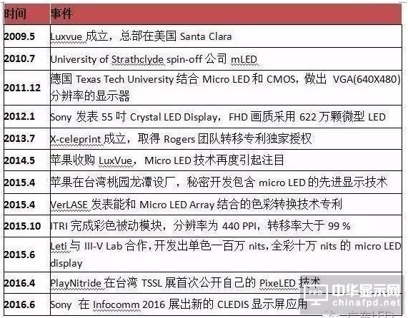 Micro LED這個詞出現的很早,早在2000年Cree就申請了名為「Micro-ledarrays withenhanced light extraction」的專利,隨后相關論文發表也很多,但Micro LED還只是純粹的學術研究。LED廠、面板廠也秘密研發多年,但仍未真正地走向商業化。