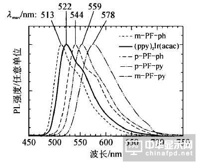 Ir配位絡合物磷光光譜從綠光到橘黃光分布