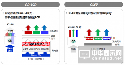 QD-LCD與(yu)自發光QLED結構對(dui)比