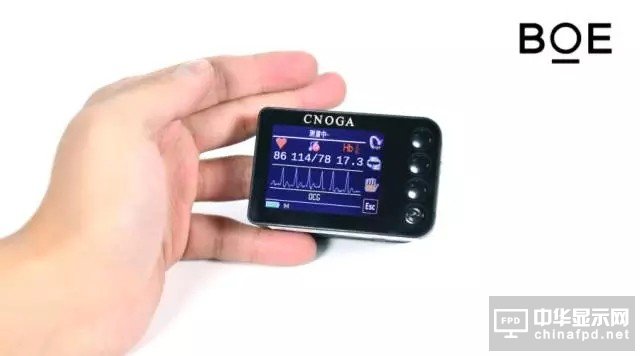 展會現場,眾多參觀者都圍在一個神奇的小黑盒子旁邊駐足體驗。這就是BOE(京東方)最新推出的無創血液監測系統,使用者僅需將手指放入無創多參數檢測儀(MTX),便可在1分鐘之內精確測量并記錄14項血液相關的重要生理參數,且BOE移動健康APP可依照參數提供健康風險預警和管理建議。