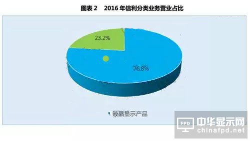 2016年,信利的主要營收在液晶體顯示器產品與電子消費產品兩大塊,其中液晶顯示器業務整年營收169.52億港元,占比76.8%;電子消費產品營收51.18億港元,占比23.2%。液晶顯示業務較往年有所下滑,但是依然牢牢保持核心業務的地位。