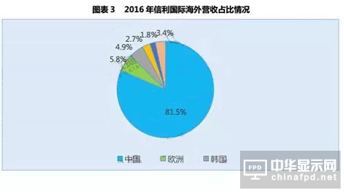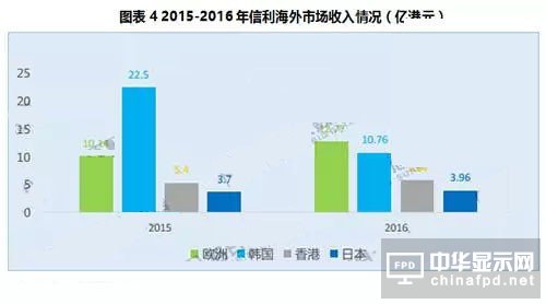 2016年,信利海外市場銷售額達到了40.91億港元,占總營業額的18.5%,同比降低了14.6%,主要原因是公司在韓國市場銷售額的大幅下降。
