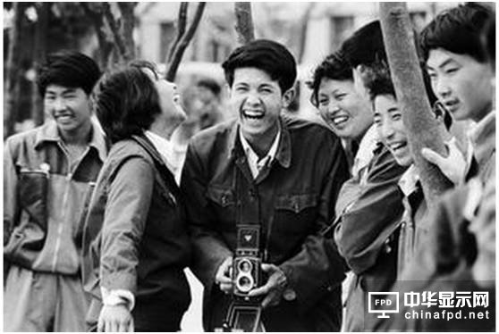 下圖為八十年代的天朝高富帥,手持海鷗牌相機,從站立的位置就可以看出他是人群的中心,旁邊的女生更是面對著他開懷大笑,一看就是人生贏家。
