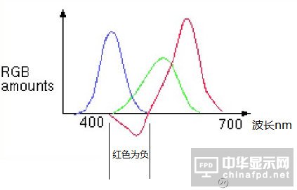 下圖清(qing)晰(xi)地反映(ying)了這一(yi)點(dian),橫(heng)坐標表(biao)示光的波(bo)長,縱坐標表(biao)示各種顏色(se)所需要三基色(se)刺激值。