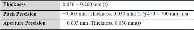 多重材料(liao)復合法(fa)主要(yao)采用(yong)樹脂和金屬材料(liao)混合以(yi)制作FMM以(yi)應對(dui)熱膨脹,V-Technology目前具(ju)有做到厚度為5um,且成膜(mo)精度位置(zhi)為2um FMM的能力(向(xiang)1 um發展)(1)。