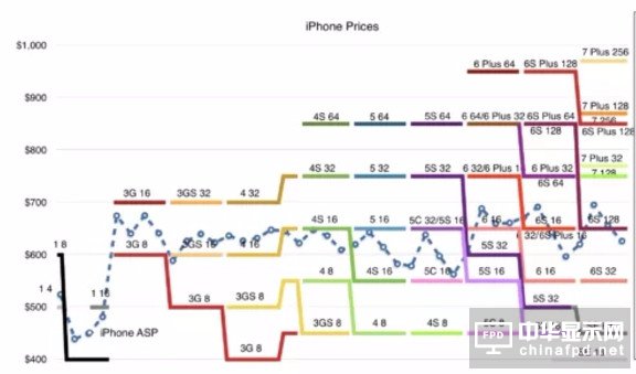 既然產能不足,那么“物以稀為貴”的道理自然適應于iPhone 8,再加上其本身“紀念版”的定位,所以售價達1000美元就不足為奇了。另外通過iPhone近年來的售價變化圖也可以看出,蘋果不斷通過提升存儲容量等方式提升售價,以保持毛利率,全新設計、功能更強的iPhone 8自然更有理由賣得更貴。