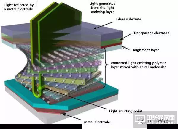 Kim Jae hoon教授解釋:“高分(fen)子OLED發光(guang)(guang)材料產生的(de)(de)一般(ban)都是高線性(xing)的(de)(de)線偏(pian)振光(guang)(guang)。當這種(zhong)光(guang)(guang)穿(chuan)過含有手(shou)性(xing)分(fen)子的(de)(de)發光(guang)(guang)層(ceng)時(shi),它(ta)可以(yi)變成了圓偏(pian)振光(guang)(guang),理(li)論上,相應角度的(de)(de)圓偏(pian)振光(guang)(guang)可以(yi)毫無損(sun)失的(de)(de)通(tong)過OLED偏(pian)光(guang)(guang)片,光(guang)(guang)效率(lv)提高100%,這樣(yang)就可以(yi)實(shi)現更(geng)(geng)低(di)功(gong)耗(hao),更(geng)(geng)亮的(de)(de)OLED屏幕。