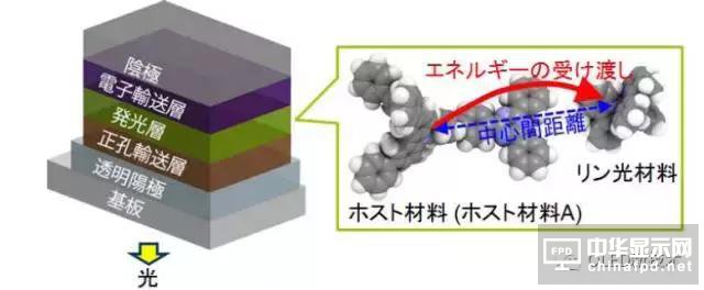 Host材(cai)料分子(ホスト材(cai)料)向(xiang)磷光材(cai)料分子(リン光材(cai)料)傳遞電子能量的示(shi)意圖