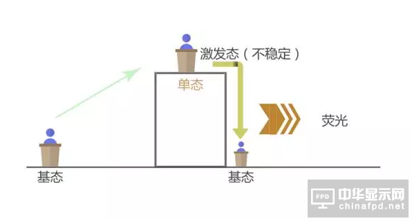 實際(ji)上,OLED的“發光(guang)”分為(wei)(wei)熒(ying)光(guang)和(he)磷光(guang)兩(liang)種(zhong),發光(guang)就是(shi)“先實現高能(neng)(neng)量(liang)(liang)狀態的,然后從這(zhe)(zhe)個高能(neng)(neng)量(liang)(liang)狀態躍遷下來并釋放(fang)能(neng)(neng)量(liang)(liang)”,這(zhe)(zhe)種(zhong)“高能(neng)(neng)量(liang)(liang)狀態”分為(wei)(wei)兩(liang)種(zhong),可(ke)以想象為(wei)(wei)這(zhe)(zhe)樣: