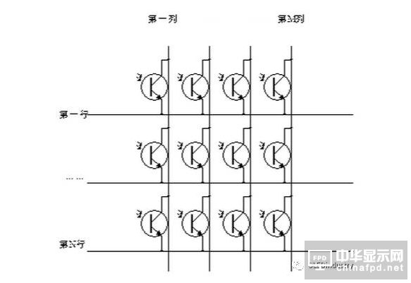 行和列分別對應發光像素的兩(liang)個(ge)電極,即陰極和陽極。