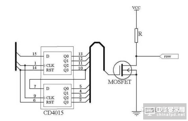行驅動(dong)電路接收這些(xie)信號,當移(yi)位寄存器輸出的為(wei)高(gao)電平時,該行的MOSFET管導通,選擇適當的電阻R,使得三(san)級(ji)管輸出到行電極的為(wei)低電平,該行就被導通。