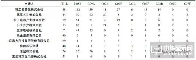G09G 和G09F 也有一定的研究,主要是精工愛普生、松下電器的索尼等。主要申請人排在第五名之后的申請人在申請數量上沒有多大差別,總體實力比較接近。