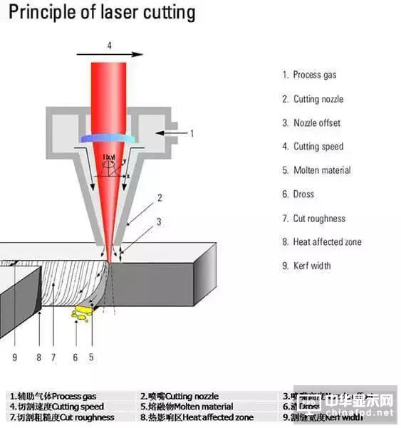 原理是將激光聚焦到材料上,對材料進行局部加熱直至超過熔點,然后用高壓氣體將熔融的金屬吹離,隨著光束與材料的移動,形成寬度非常窄的切縫。激光切割的精度可以達到20um。