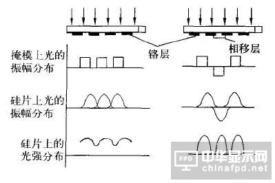 下圖顯示(shi)了光學(xue)光刻技術中在(zai)應用相移掩模后所獲得的光學(xue)光刻分辨率的提高。