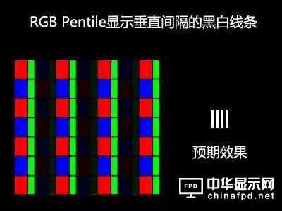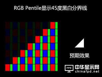 更多的情況就不一一分析了,在這些情況下,會出現的問題都是屏幕上會出現非白色的邊緣,這和我們要求的想去甚遠,畢竟誰都不希望把黑白照片顯示的花花綠綠吧?所以Pentile技術會對這些情況作出一定的修正,那就是把一些本該熄滅的子像素點亮,人為的制造一些相鄰像素,來實現顏色的正常顯示。但這就帶來了一個問題,那就是本來平整的邊緣變得不再平整,成為了鋸齒狀。這也是Pentile之所以會出現邊緣毛刺的原因。具體的圖我就不畫了。