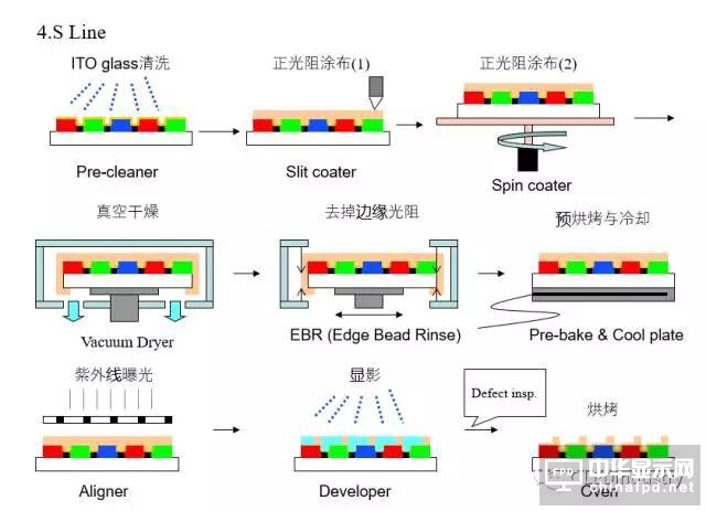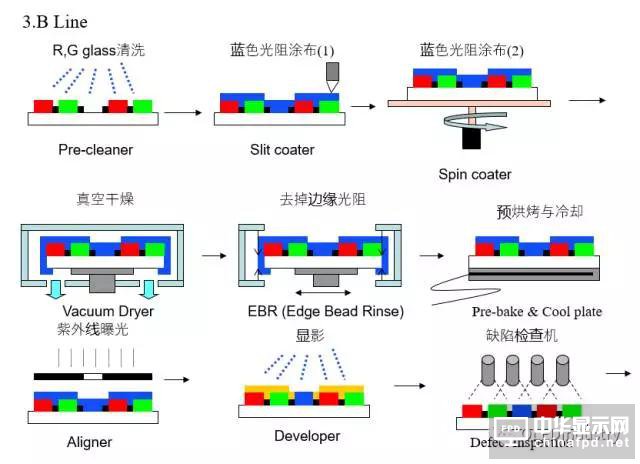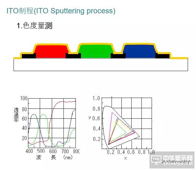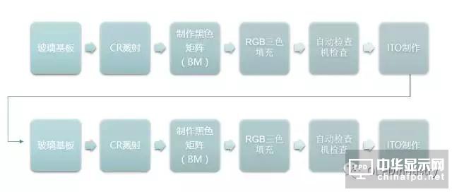Color Filter(彩色濾光(guang)(guang)片)是(shi)組成(cheng)(cheng)(cheng)面板(ban)中最重要的(de)關鍵零(ling)組件,占面板(ban)制(zhi)造(zao)總成(cheng)(cheng)(cheng)本約四分之一,制(zhi)造(zao)生(sheng)產方(fang)式是(shi)在素玻璃基板(ban)上用紅、綠(lv)、藍(lan)(lan)色的(de)光(guang)(guang)阻液原(yuan)料,用黃(huang)光(guang)(guang)蝕刻(ke)方(fang)式或是(shi)其(qi)它技術(如顏料分散或轉印(yin)方(fang)法)形(xing)成(cheng)(cheng)(cheng)與紅、綠(lv)、藍(lan)(lan)三原(yuan)色的(de)長(chang)條形(xing)數(shu)組的(de)基板(ban)。