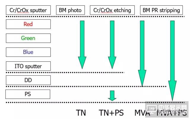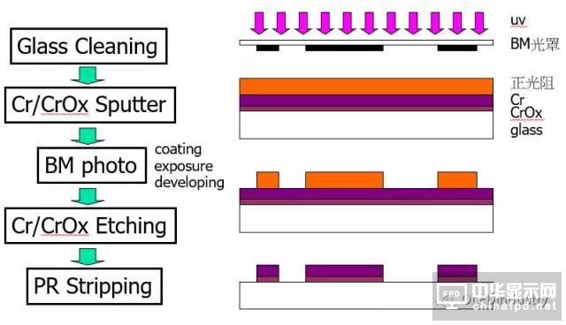 正光阻制程 : 光(guang)阻照到紫外光(guang)的部份會在后續顯影步驟(zou)中被移(yi)除。如 : BM, DD.
