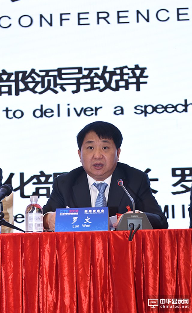 在本次新聞(wen)發(fa)布會(hui)(hui)(hui)上,工業和(he)信(xin)(xin)息(xi)化部副(fu)(fu)(fu)部長、中國(guo)(guo)電(dian)子信(xin)(xin)息(xi)博(bo)(bo)覽(lan)會(hui)(hui)(hui)組(zu)(zu)委(wei)(wei)會(hui)(hui)(hui)主(zhu)任(ren)羅文,深(shen)圳(zhen)(zhen)市(shi)人(ren)民(min)政(zheng)府(fu)市(shi)長、中國(guo)(guo)電(dian)子信(xin)(xin)息(xi)博(bo)(bo)覽(lan)會(hui)(hui)(hui)組(zu)(zu)委(wei)(wei)會(hui)(hui)(hui)主(zhu)任(ren)陳(chen)如桂分別致辭講話;工業和(he)信(xin)(xin)息(xi)化部電(dian)子信(xin)(xin)息(xi)司副(fu)(fu)(fu)司長、博(bo)(bo)覽(lan)會(hui)(hui)(hui)組(zu)(zu)委(wei)(wei)會(hui)(hui)(hui)辦公室(shi)副(fu)(fu)(fu)主(zhu)任(ren)吳勝武(wu)介紹了CITE2018籌(chou)備組(zu)(zu)織的具(ju)體情況。工業和(he)信(xin)(xin)息(xi)化部電(dian)子信(xin)(xin)息(xi)司司長、博(bo)(bo)覽(lan)會(hui)(hui)(hui)組(zu)(zu)委(wei)(wei)會(hui)(hui)(hui)副(fu)(fu)(fu)主(zhu)任(ren)刁(diao)石京,深(shen)圳(zhen)(zhen)市(shi)人(ren)民(min)政(zheng)府(fu)副(fu)(fu)(fu)市(shi)長、博(bo)(bo)覽(lan)會(hui)(hui)(hui)組(zu)(zu)委(wei)(wei)會(hui)(hui)(hui)副(fu)(fu)(fu)主(zhu)任(ren)高(gao)自民(min),深(shen)圳(zhen)(zhen)市(shi)人(ren)民(min)政(zheng)府(fu)秘(mi)書長李廷忠(zhong),工業和(he)信(xin)(xin)息(xi)化部國(guo)(guo)際合作司副(fu)(fu)(fu)司長劉子平也出(chu)席了新聞(wen)發(fa)布會(hui)(hui)(hui)。深(shen)圳(zhen)(zhen)市(shi)人(ren)民(min)政(zheng)府(fu)副(fu)(fu)(fu)秘(mi)書長、中國(guo)(guo)電(dian)子信(xin)(xin)息(xi)博(bo)(bo)覽(lan)會(hui)(hui)(hui)組(zu)(zu)委(wei)(wei)會(hui)(hui)(hui)辦公室(shi)副(fu)(fu)(fu)主(zhu)任(ren)高(gao)裕躍主(zhu)持本次新聞(wen)發(fa)布會(hui)(hui)(hui)。