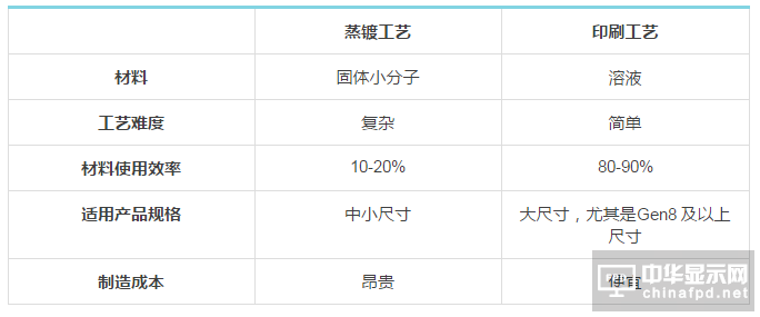 印刷工藝相對于蒸鍍工藝有以下優勢: