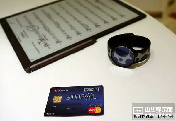 圖二 : 張志明處長愛用自家技術,隨身帶著電子紙的手寫板、手表(這不是支,這是Sony新一代FES Watch U),和使用電子紙的智能信用卡。