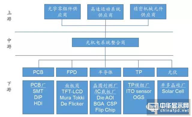 AOI 設備的上游主要包括光學元件供應商和機械元件、運動系統提供商,其中機械設備與其他技術的通用性較高,一般廠商均可提供;
