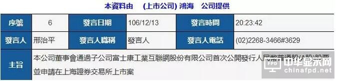 據臺灣證交所公告顯示,鴻海精密董事會通過子公司富士康工業互聯網股份有限公司首次公開發行人民幣普通股股票并申請在上海證券交易所上市的議案。