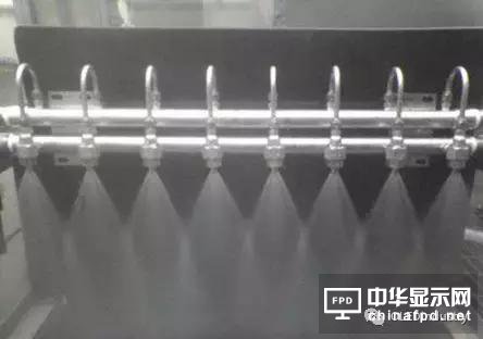 目前水洗過程中,最重要的清洗過程是水氣二流體清洗。二流體清洗技術是將一種高壓氣態流體(通常使用氮氣)與一種液態流體(通常為DI水)混合后,再通過一種特殊的噴嘴--超音速噴嘴,使高壓氣 體與清洗液形成的液滴以超過聲音在空氣中的傳播速度(340 米/秒)的速度噴出,當從噴嘴中噴射出的液滴噴射到運動中的被清洗物體(玻璃基板)上時,附在玻璃基板上的灰塵會被溶解剝離。此時清洗液的速度可達到1000米/秒,在被清洗物體上附著的超微小顆粒在二流體清洗液噴射時產生的沖擊波作用、被清洗物體表面受到沖擊時產生的振動作用、液滴沿被清洗物體表面高速噴射這三種作用的協同作用下而被去除。