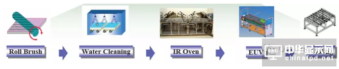 紫外線照射清洗的原理是利用UV燈,在工作時發出的短波紫外線進行清洗。紫外線是具有較高的能量,而且波長越短的紫外線能量越高。當紫外線照射到污垢上時,污垢分子吸收光能會處于高能量的激發狀態并可能發生分子內的化學鍵斷裂而分解。同時紫外線會使得基板表面的接觸角大大降低,這會有利于PI的印刷。