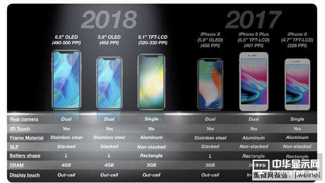 針對今年下半年將推出的iPhone新品,郭明錤一直堅持著將會有三款的預測,分別是5.8吋OLED屏幕款、6.5吋OLED屏幕款以及6.1吋LCD屏幕款。 其中,由于采用LCD屏幕的6.1吋款式,有可能進一步擠壓到2017年iPhone X的市場空間,分析師還預測這一款經典iPhone在2018年中就將停產,為6.1吋LCD屏幕的新款手機讓路。