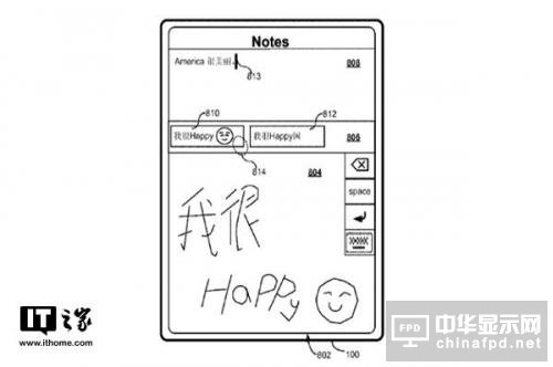 根據報道,蘋果申請的一項智能手寫識別專利最近得到了揭示。這項專利的技術針對的是亞洲的用戶,尤其是中國用戶,因為這部分地區的用戶使用的語言會更多地與筆劃聯系在一起。為了表現這一點,蘋果在專利文件的示意圖上還用結合中英文的句子“我很Happy”進行了展示。