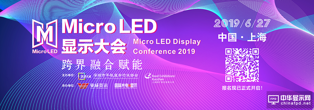 “2019 MicroLED顯示大會”。大會以“跨界、融合、賦能”為主題,誠邀全球MicroLED技術領域的領軍人物,從行業、技術、材料以及資本市場各個角度,共同探討Micro LED技術發展的最新趨勢和市場機遇。