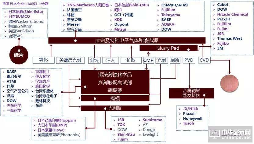 在對(dui)韓國禁運的三大類材料中,日本廠商基本處于全(quan)球壟斷地位