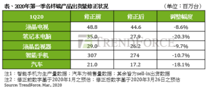 二月份因為疫情影響,主要位于中國大陸境內的前六大代工廠生產能力大受打擊,為此集邦咨詢將第一季筆電出貨量下調至27.9百萬臺,較疫情爆發前預估的35.0百萬臺大幅減少20.3%。