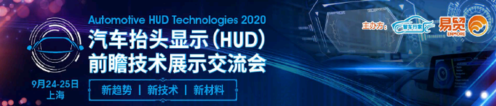 2020汽車抬頭顯示HUD前瞻技術展示交流會9月起航