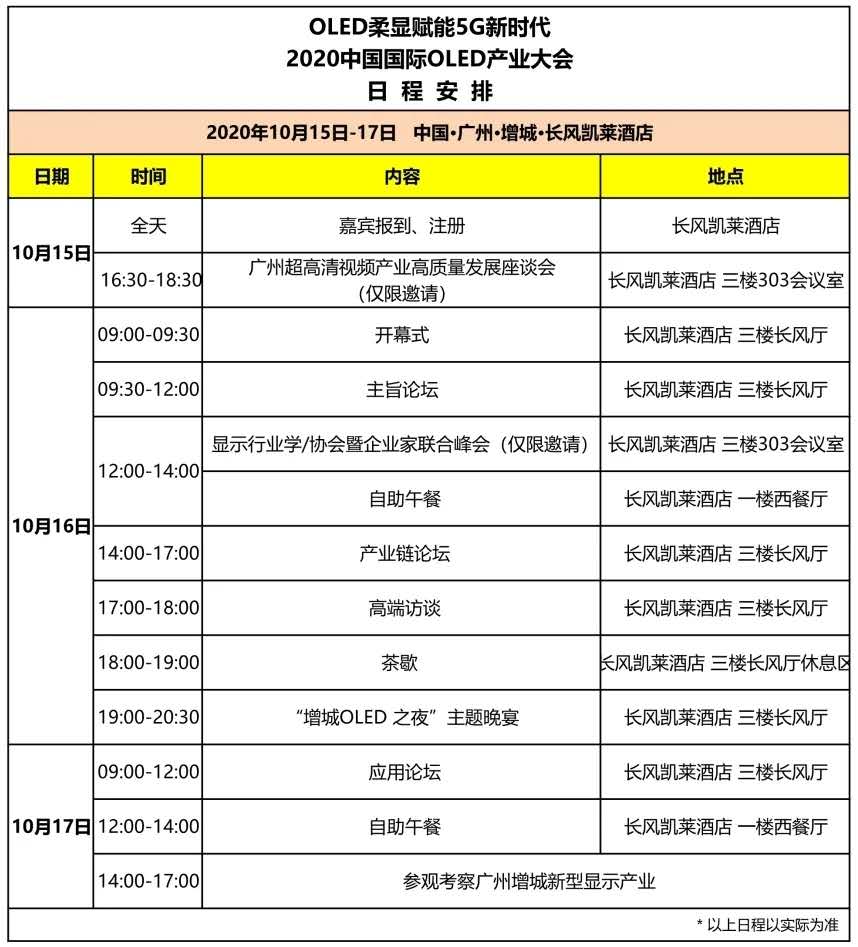 2020年(nian)10月(yue)15-17日(ri),以(yi)“柔(rou)顯賦能5G新時代”為主題的(de)2020中國國際OLED產業大(da)會將在廣州增城保(bao)利(li)皇冠假日(ri)酒店舉(ju)辦。不(bu)僅(jin)可(ke)以(yi)與知名專家、學者以(yi)及國內外成功企業家密切交流;了(le)解并(bing)學習OLED最新的(de)技(ji)術(shu)發(fa)展和市場趨勢;還可(ke)以(yi)在同(tong)期(qi)精(jing)品展區現(xian)場領略最新OLED黑科(ke)技(ji)產品。