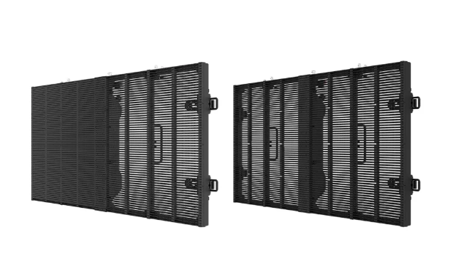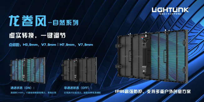 全新戶外創意透明屏產品,可一鍵切換通透與非通透模式,一屏兩用的特點,將屏顯的創意領域再次拓寬。當遮光板打開時,作為一款戶外透明屏,其通透率≥49%,與玻璃櫥窗等建筑相結合,打造獨特藝術效果;當遮光板關閉,切換非通透模式,亦可作為常規高清顯示屏使用;箱體上下間安裝使用快速鎖+齒輪鎖,搭配磁鐵輔助定位,整屏無縫安裝,加強防風結構設計,戶外創意顯示必備。
